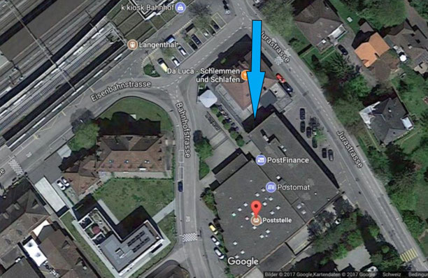 Wir sind im 2. Stock des Bürogebäude mit Eingang links der Hauptpost. Es hat einen rollstuhlgängigen Lift und